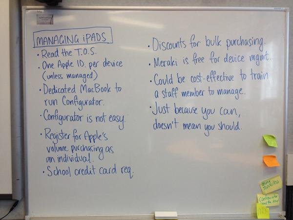 After Tanya, I listened to Clinton sharing about Configurator and Meraki. I really like the way he speaks, as in the practicalities and how to save school money. I have found configurator a real challenge especially with purchased apps. When a teacher asks me about adding new apps to the system I now totally ignore them. However from now one I will put across to them to trial the app first on their teacher iPad using their class budget to buy the app, test it with a group of students and then write me a proposal of the value of purchasing the app for the ipads. If they can be bothered to do all that, then I can be bothered to spend hours fighting configurator to install it.   The last holidays I just could not face spending another full week updating the system. There must be a better way. I wonder if there are schools who could do with a refresher and together we fly him up for a day’s training. Clinton said that he would create self help videos so I look forward to those. Again notes are from Tanya. I also found out that iPad 2 system charges for apple apps but these are given with later models.  Clinton also cautioned against giving children printing rights on a chrome. I agree with him. I still cannot understand teachers who want children to be able to print from the chrome. As we move more and more digital, are they not aware that the doc can be shared?